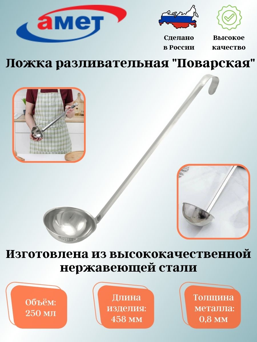Разливательная ложка для напитков и жидких блюд изготовлена из нержавеющей стали пищевого класса. Легко моется, не боится температурных перепадов, долго служит, не вступает в реакции с пищей. Ложка оснащена длинной ручкой с загнутым концом для подвешивания на рейлинге и удобного ухвата.