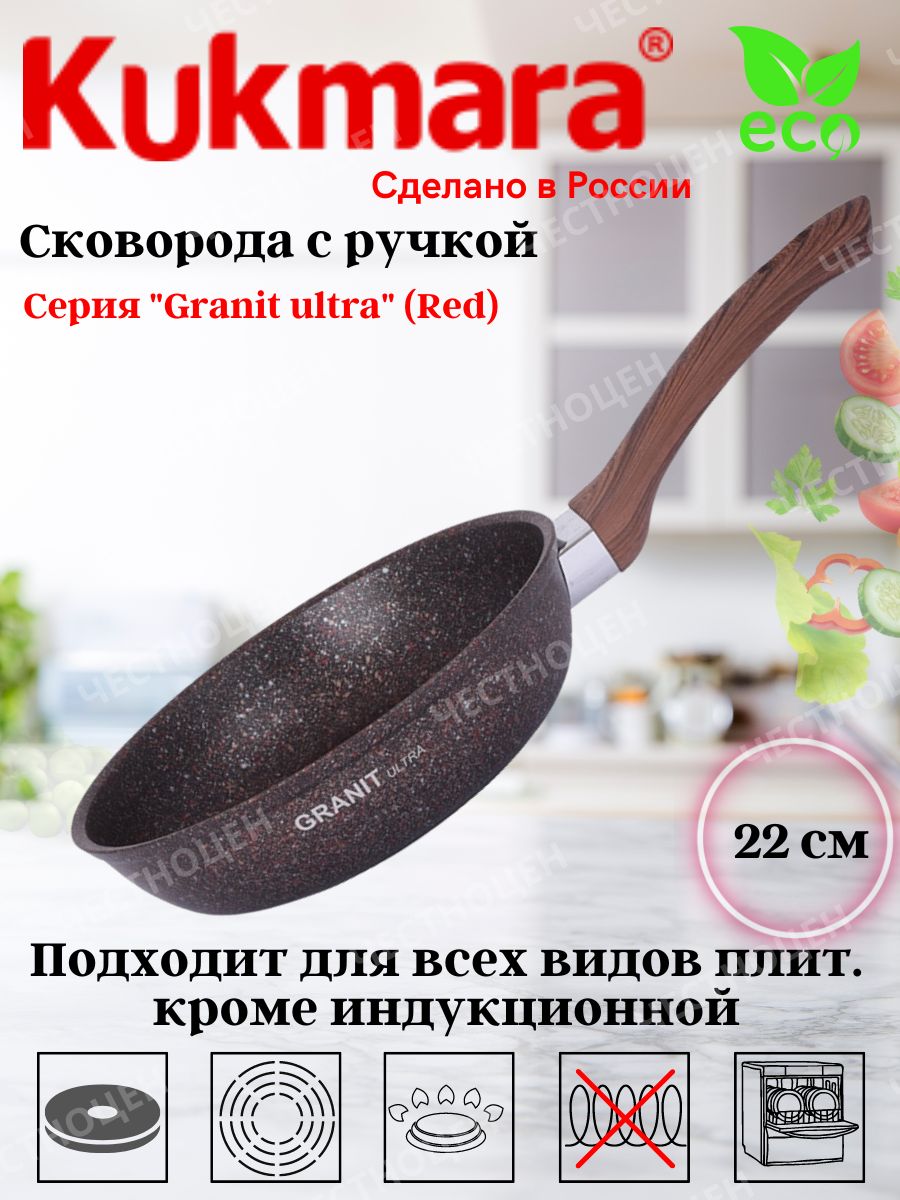 Сковорода 220мм с ручкой АП "Granit ultra" red сга220а