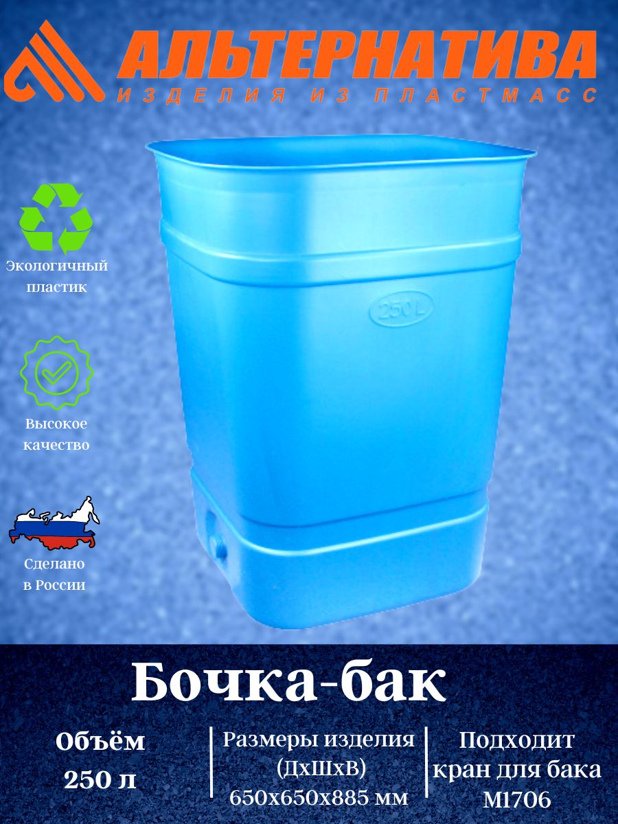 Бочка-бак 250л. без крышки (квадратная) М1695