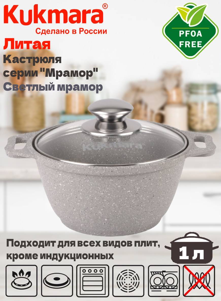 Кастрюля 1,0л со стекл. кр. АП (светлый мрамор) кмс12а