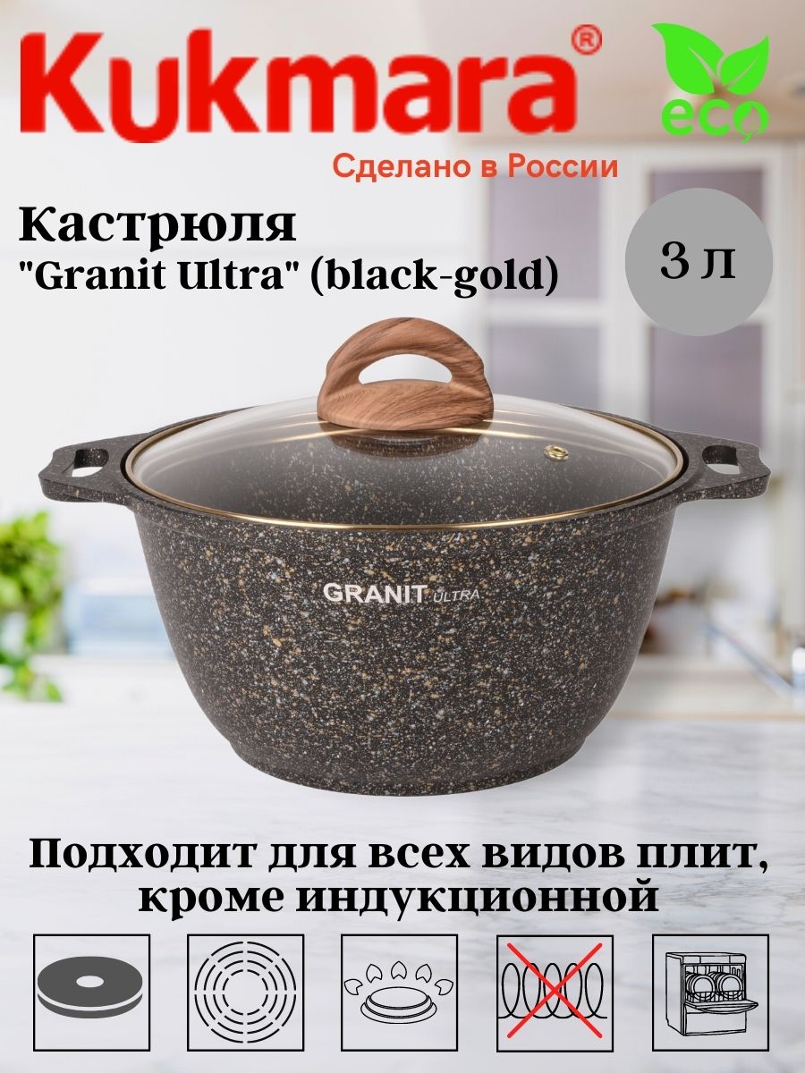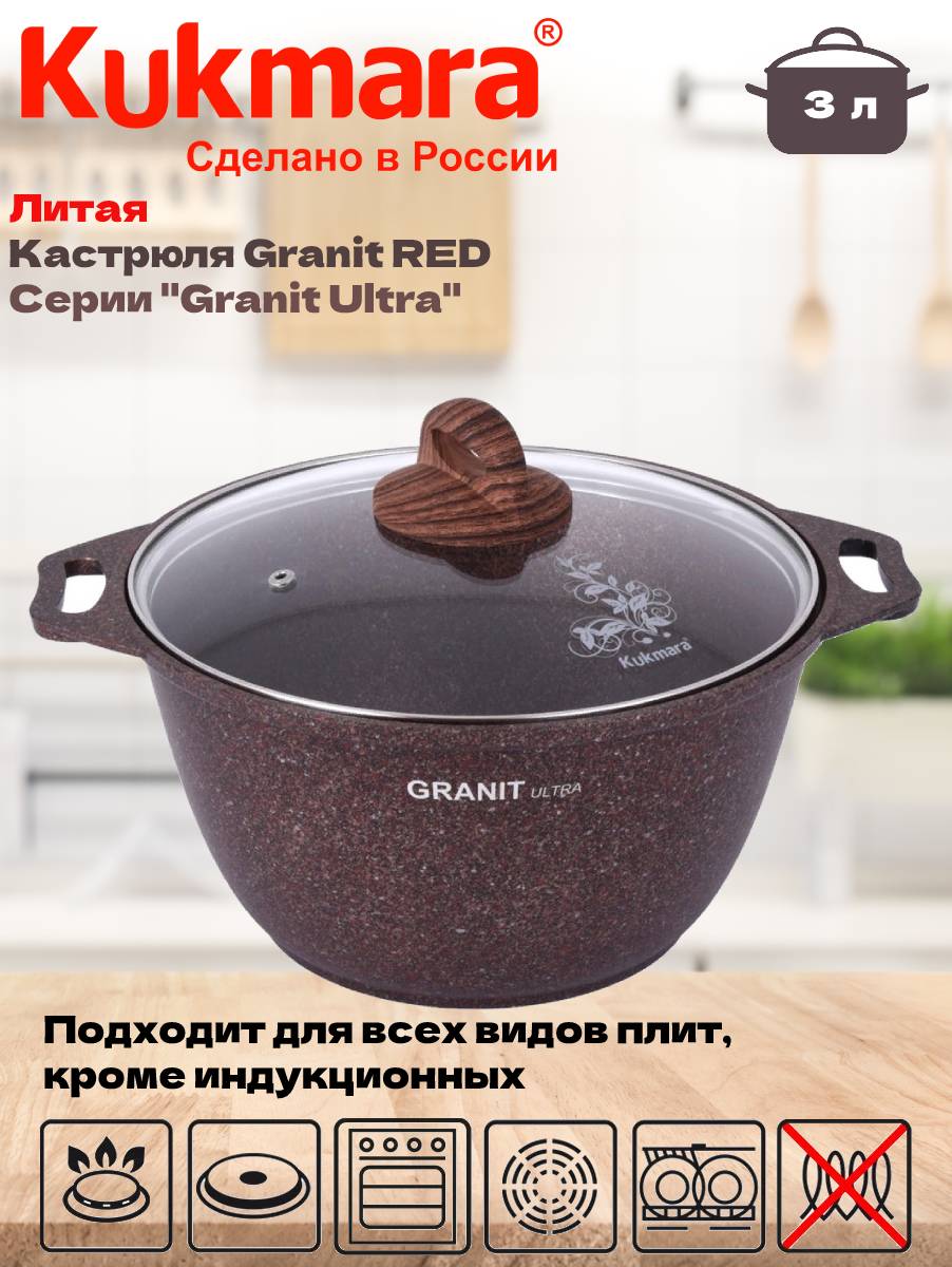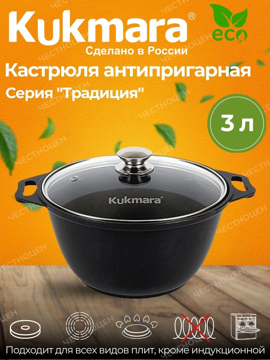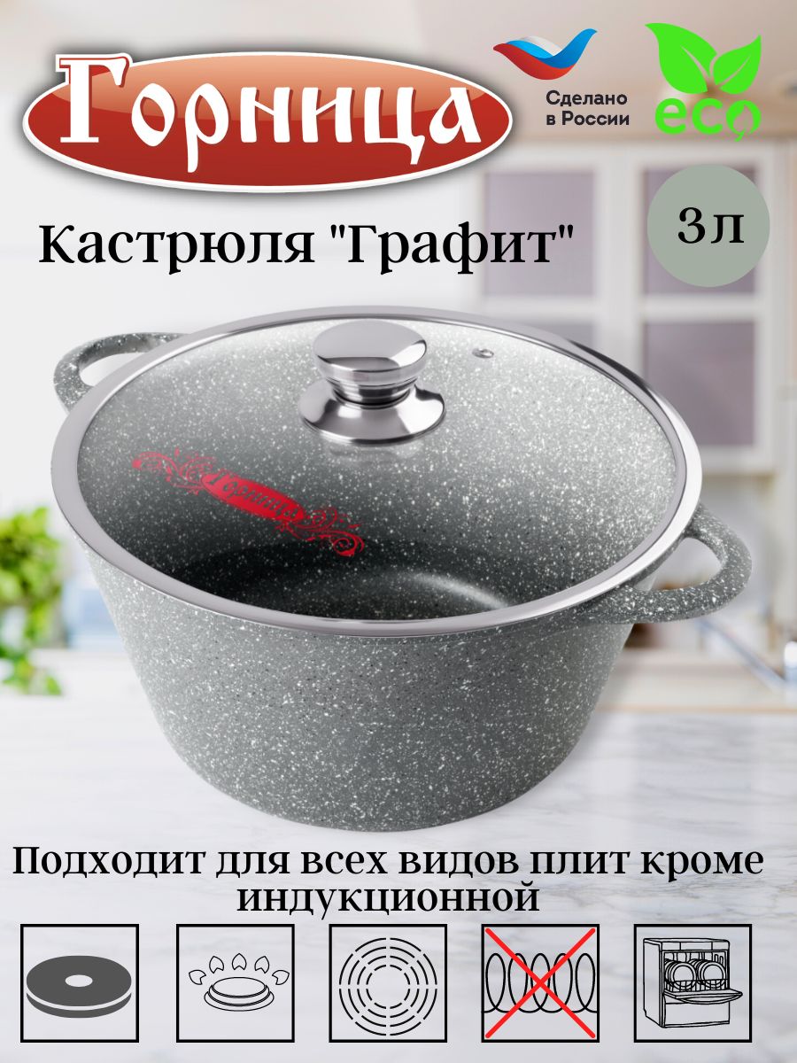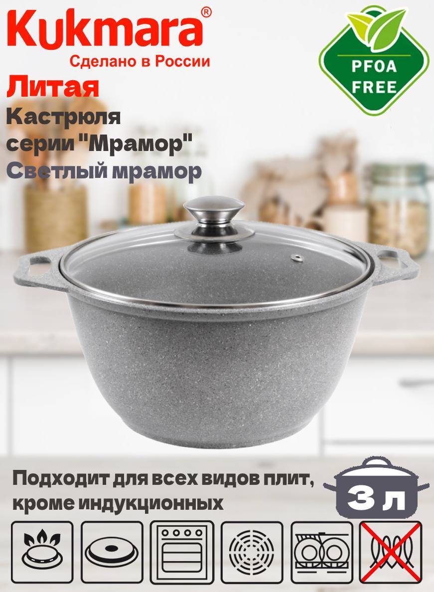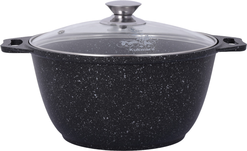 Кастрюля 3,0л со стеклянной крышкой, антипригарное покрытие (темный мрамор) кмт32а