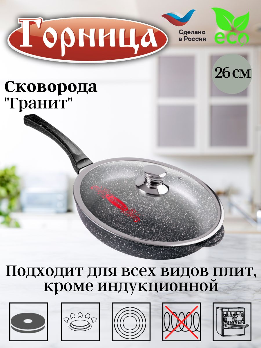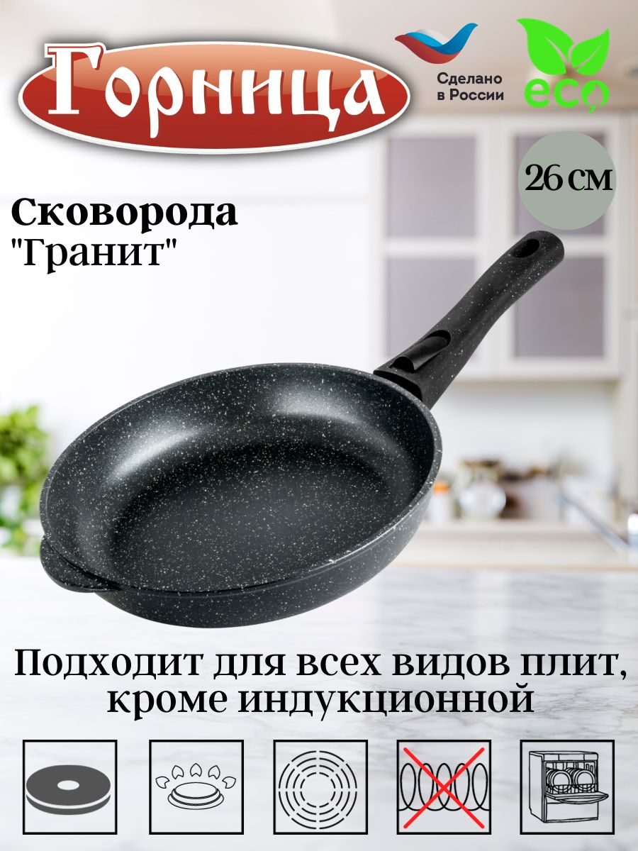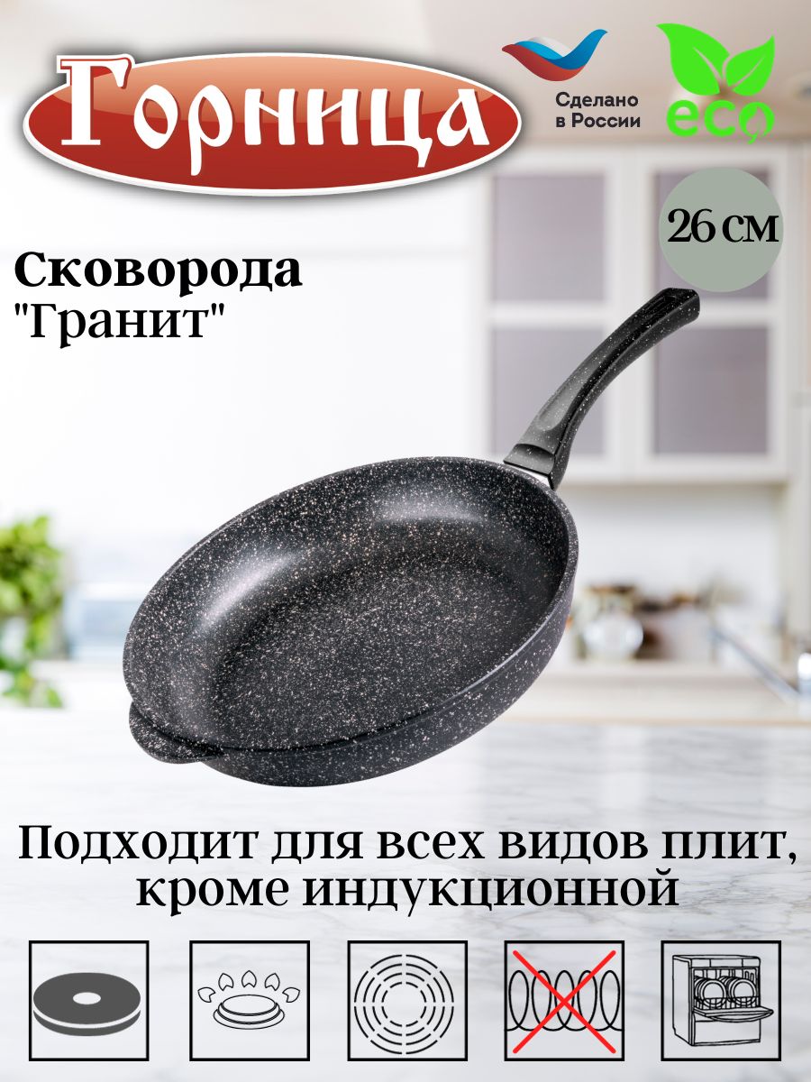 Литая алюминиевая сковорода с антипригарным покрытием – оригинальная посуда ТМ Горница, которая подходит для газовых, электрических и стеклокерамических плит. «Шоколад». Коллекция с улучшенным четырёхслойным антипригарным покрытием. Дополнительный слой с мраморным эффектом увеличивает износостойкость и создаёт цветовой эффект мрамора шоколадного оттенка. Сковорода литая изготовлена из пищевого алюминия без канцерогенных веществ. Антипригарная сковорода имеет толстые стенки и утолщенное дно, что способствует равномерному распределению тепла и создает благоприятные условия для качественного процесса готовки.