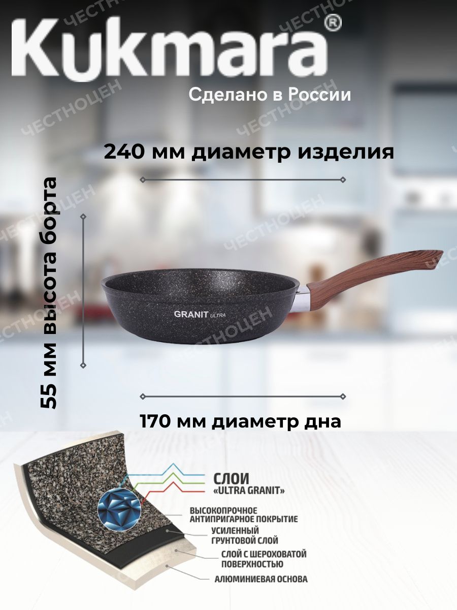 Внутреннее покрытие-Антипригарное покрытие "Ultra granit, усиленное сверхтвердыми минералами нового поколения, близкими по твердости алмазу