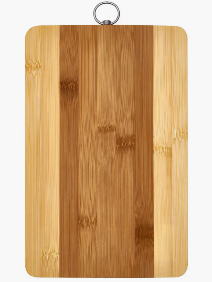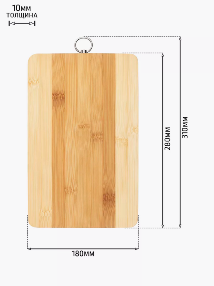 Классическая прямоугольная разделочная доска из комбинированных оттенков массива бамбука, обладающего высокими прочностными характеристиками. Бамбук - экологически чистый материал, он ценится за устойчивость к нагрузкам и влагостойкость. Подходит для нарезки любых продуктов. Не скользит по поверхности стола, не впитывает запахи и влагу. У разделочной доски имеется ручка в виде металлического колечка, что дает возможность при необходимости подвесить доску. Доска устойчива к механическим нагрузкам и не тупит нож.