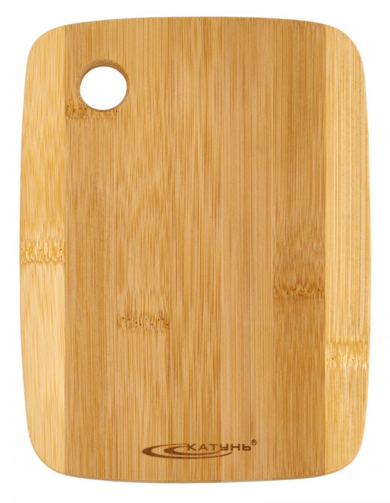 Разделочная доска из бамбука, с фирменным логотипом, без сомнения, найдет место среди нужной кухонной утвари. Удобное отверстие для подвеса. Легко моется.