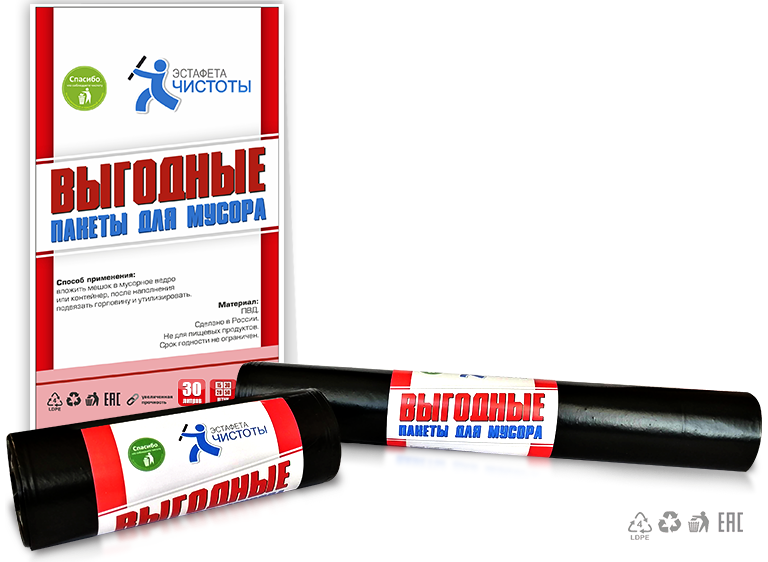 Мешки изготовлены из полиэтилена, что обеспечивает их прочность и долговечность. Объем каждого мешка составляет 30 литров, что позволяет вместить в него большое количество мусора.