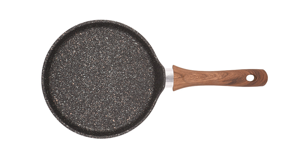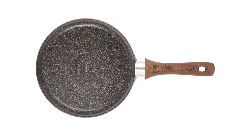 Блинница обладает инновационным покрытием Ultra Granit. Такое покрытие, имеющее двойное усиление сверхтвердыми минеральными частицами нового поколения, близкими по твердости к граниту, допускает использование неострых металлических кухонных принадлежностей и гарантирует долгий срок службы даже при ежедневном использовании, при этом абсолютно безопасно для здоровья.Сковорода комплектуется несъемной ручкой из высококачественного бакелита и окрашена в цвет «под дерево». Дополнительно, поверх покрытия, нанесен слой soft-touch, который придает поверхности ручки приятную бархатистость и предотвращает соскальзывание руки даже при попадании на ручку масла.