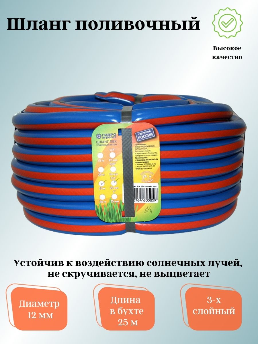 Шланг поливочный Д=1/2 (25м) арм., 3-х слойный Гидроагрегат синий с оранжевой полосой