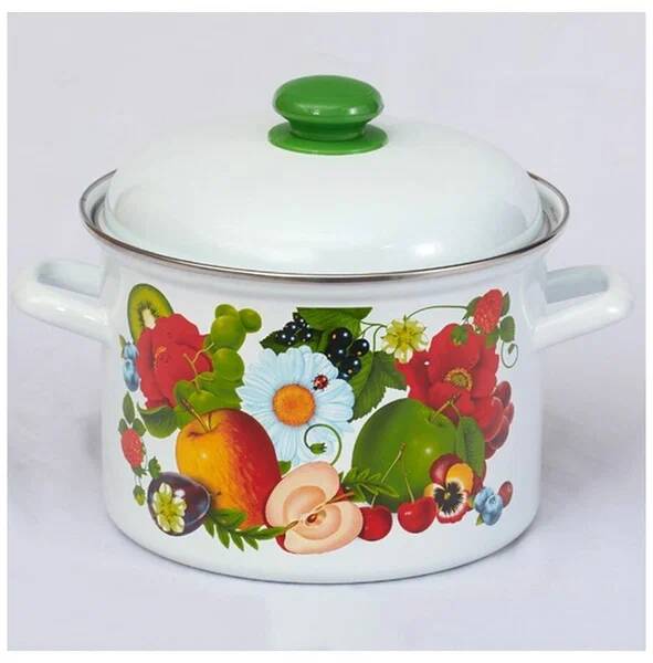 Кастрюля цилиндрическая «Фруктовый микс», 4,5 л. Диаметр, см: 22. Капсульное дно: Нет. Крышка: Да. Материал: Эмалированная сталь. Материал крышки: Эмалированная сталь. Объём, л: 4,5. Размер упаковки: 28 см x 22 см x 20 см. Рисунок: Да. Страна производителя: Россия. Тип кастрюли: Цилиндрическая. Тип плиты: Для галогенной плиты, Для газовой плиты, Для электрической плиты, Для индукционной плиты, Для стеклокерамической плиты. Тип покрытия: Эмалированное.