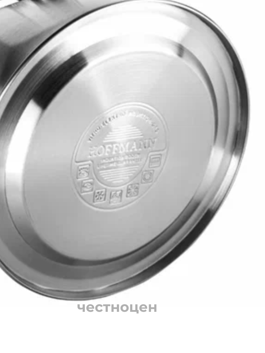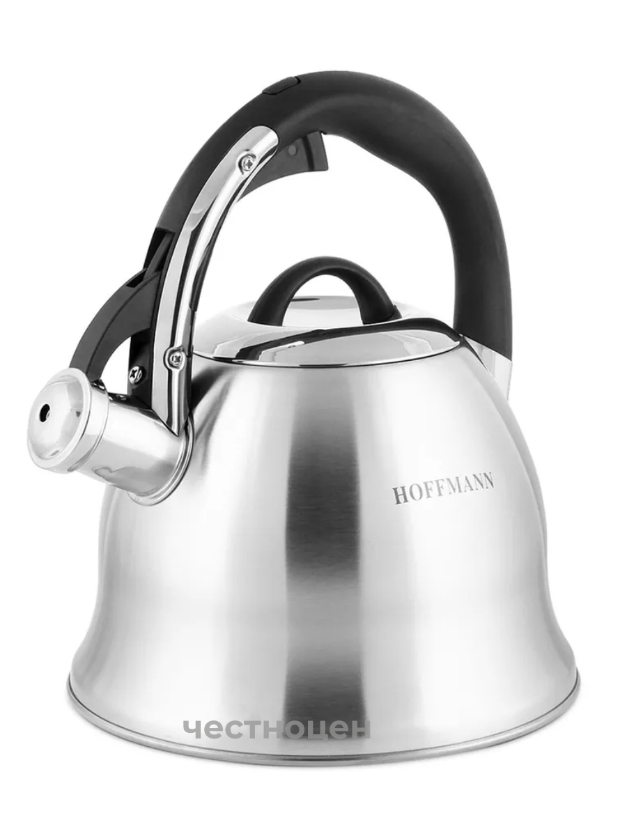 Чайник " HOFFMAN" изготовлен из высококачественной нержавеющей стали, что делает его весьма гигиеничным и устойчивым к износу при длительном использовании. Гладкая и ровная поверхность существенно облегчает уход за посудой. Чайник " HOFFMAN" который изготовлен из качественных материалов, при кипячении сохраняет все полезные свойства воды.