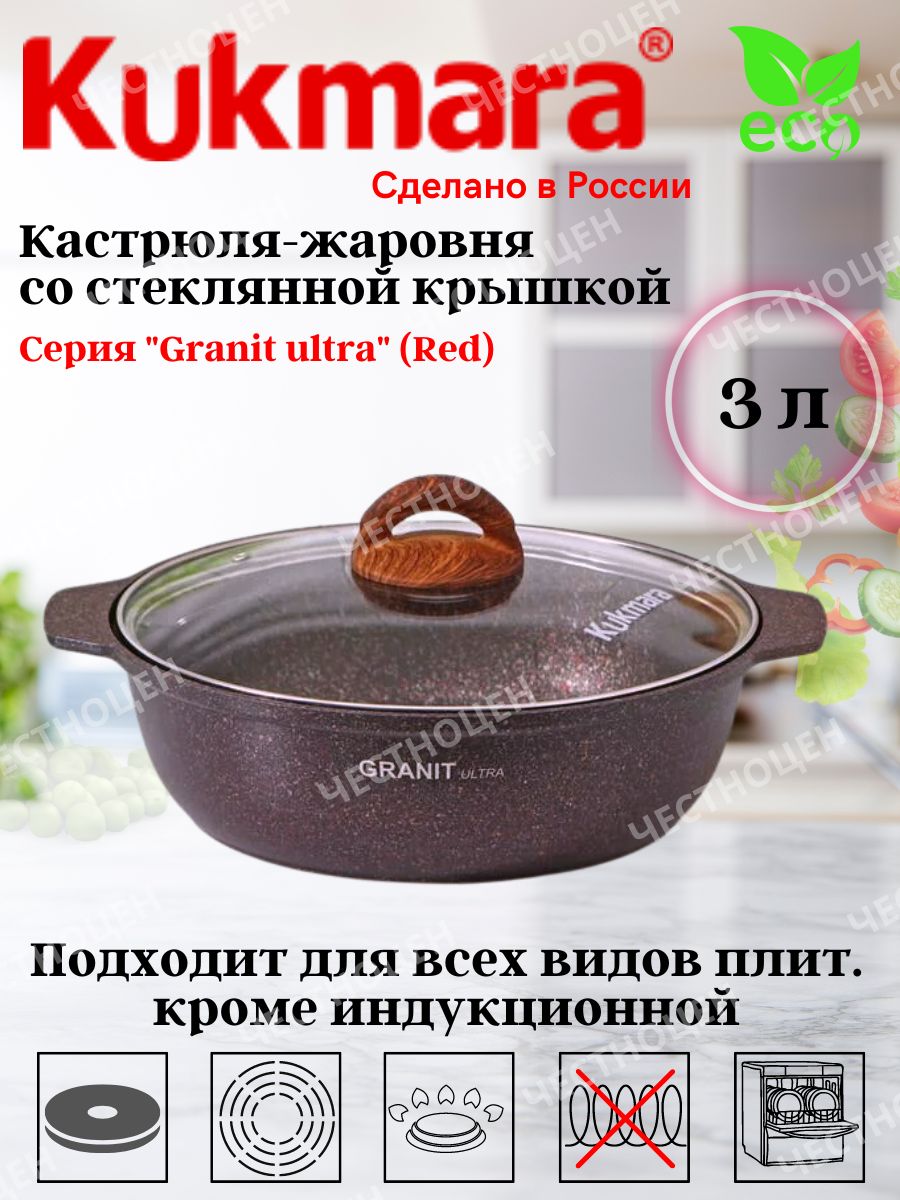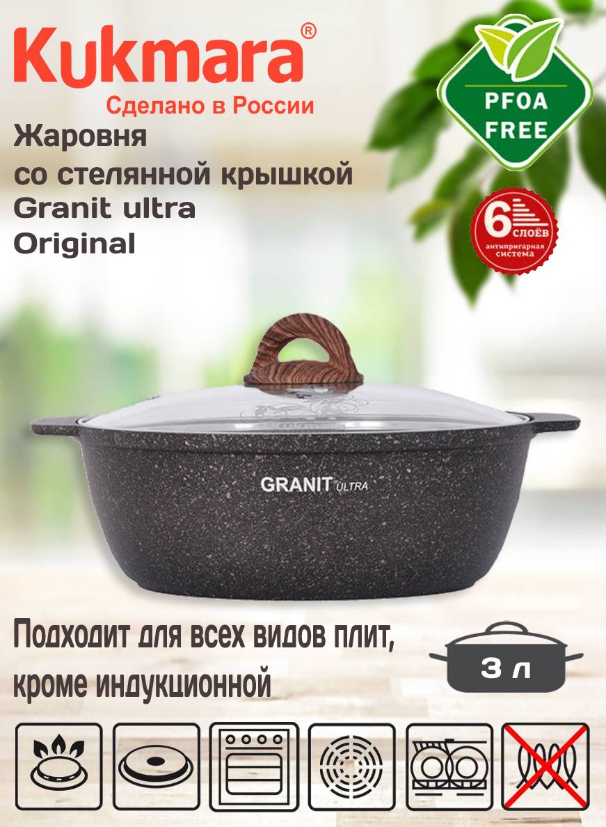 Кастрюля-жаровня 3,0л со стекл.крышкой АП "Granit ultra" (blue) жгг31а
