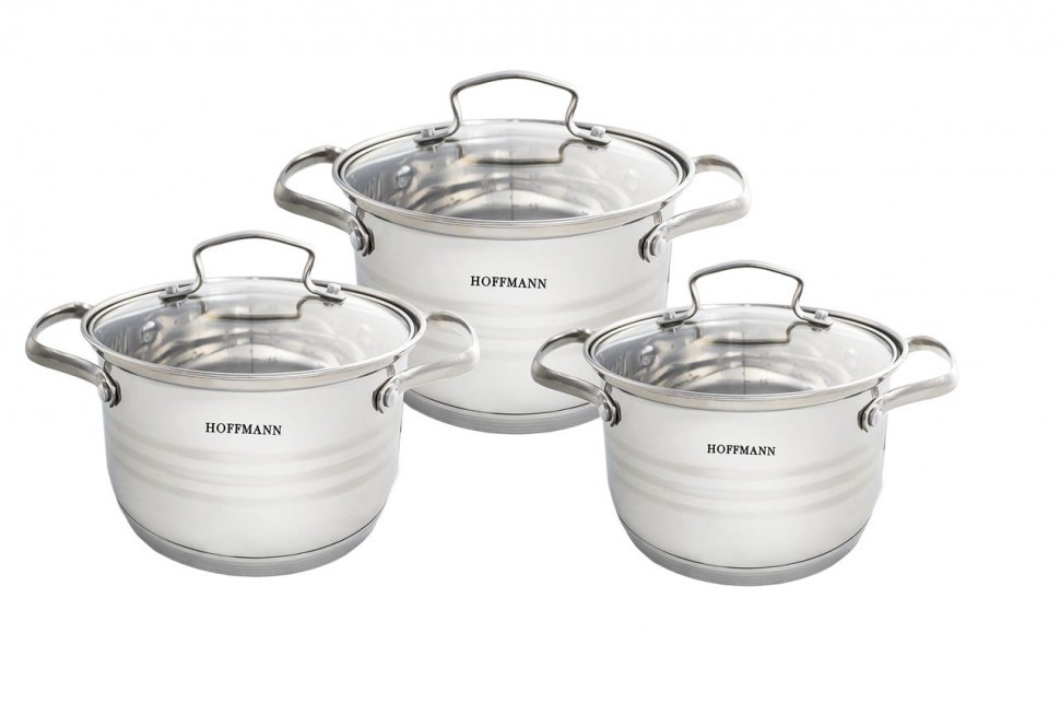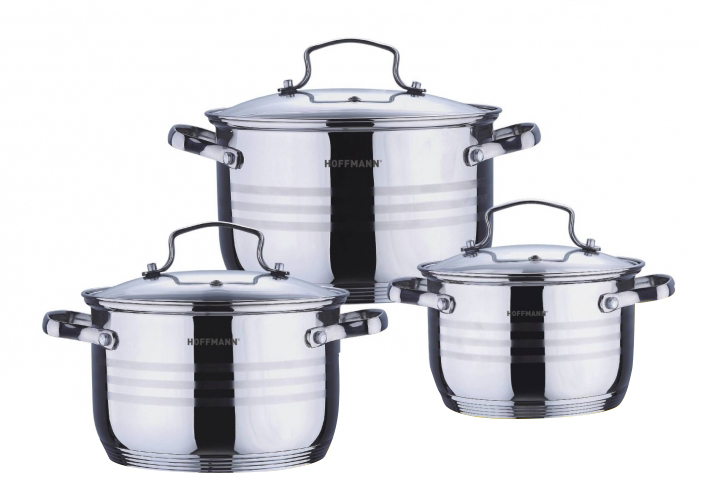 Набор кастрюль Hoffmann изготовлен из нержавеющей стали, что обеспечивает его долговечность и устойчивость к коррозии. Благодаря этому, кастрюли не впитывают запахи и вкусы продуктов, а также легко моются и сохраняют свой первоначальный вид даже после длительного использования.