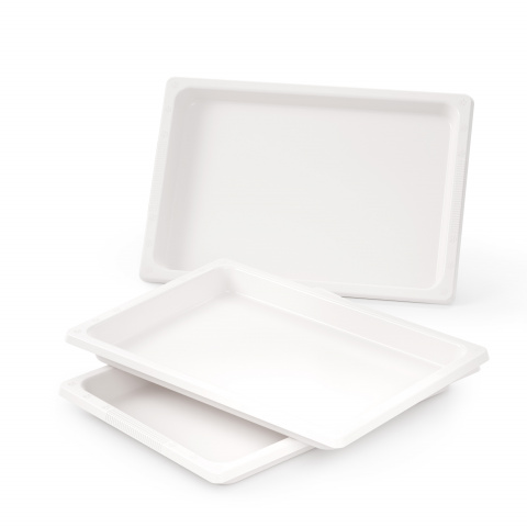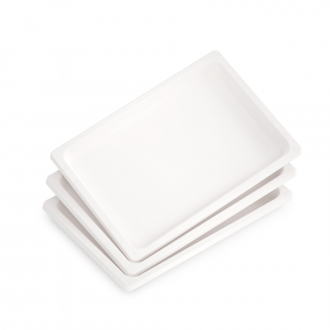Углубленные прямоугольные подносы очень удобны для заморозки пельменей, мантов, котлет, так как решают вопрос рационального размещения большого количества заготовок. Высокие бортики защищают продукты от случайного падения при выемке из морозильной камеры. На дне изделия имеются рельефные полосы, предотвращающие прилипание продуктов к подносу, после заморозки их легко снять с поверхности.