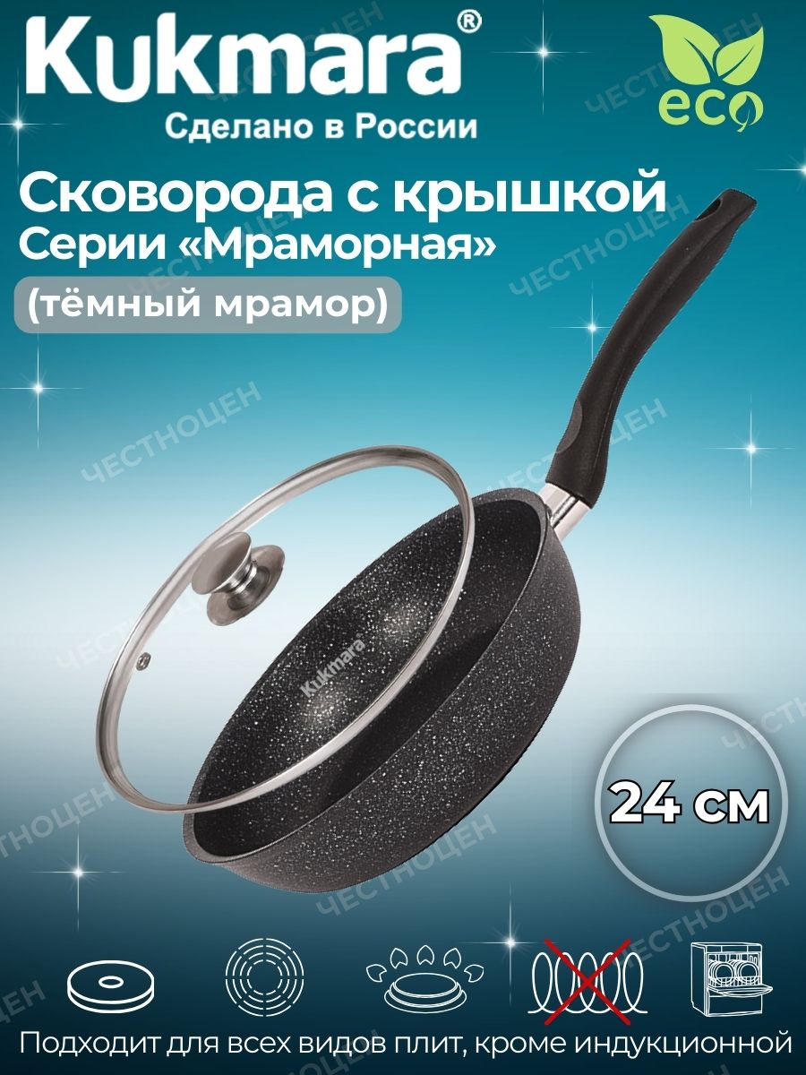 Сковорода 240/60мм с ручкой,стеклянной крышкой,антипригарное покрытие(темный мрамор) смт24603а