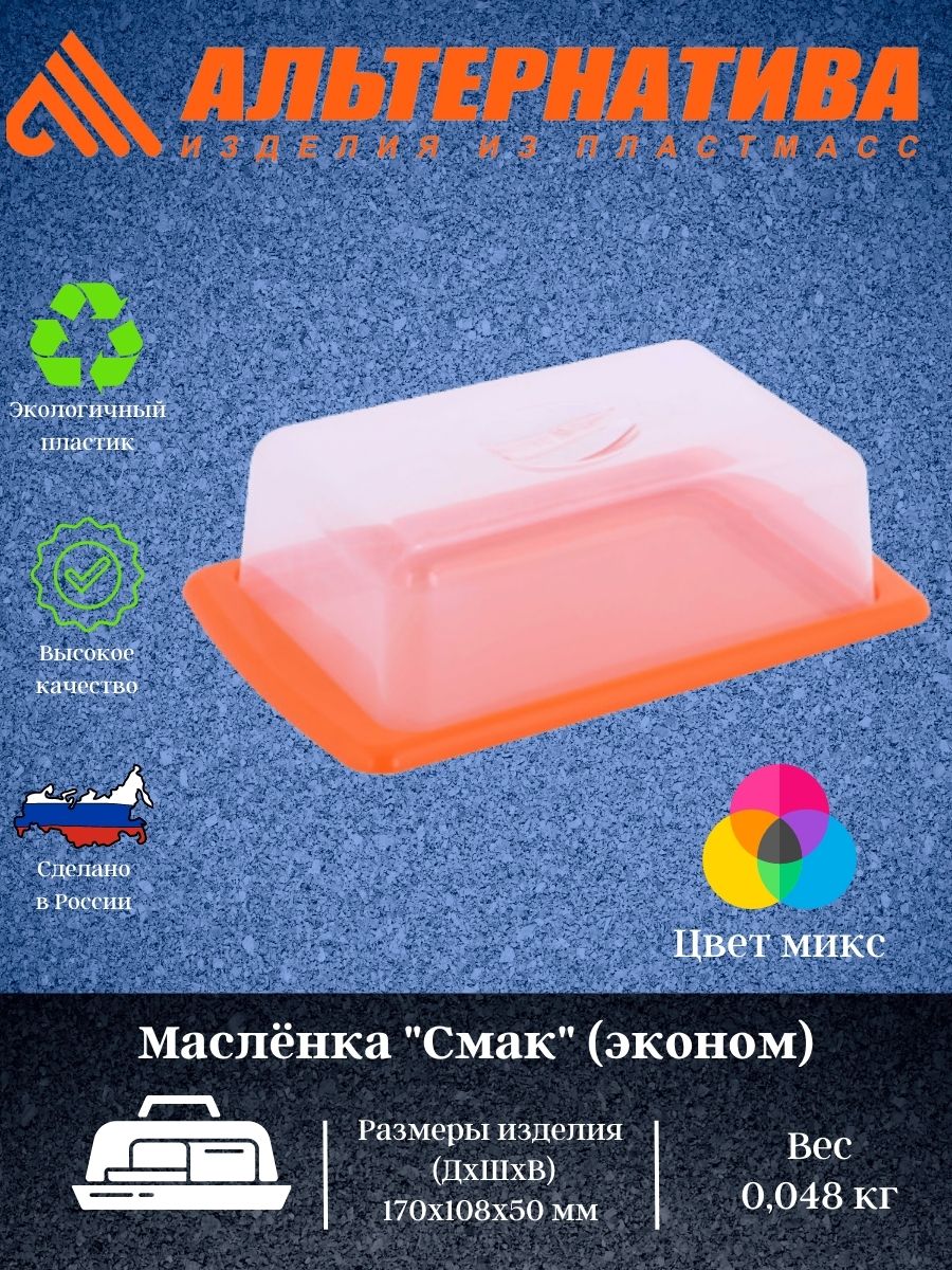 Масленка выполнена из высококачественного пластика в виде подноса с крышкой. Универсальная масленка для хранения масла. Лаконичный дизайн и яркая цветовая гамма прекрасно подойдут как для хранения масла в холодильнике, так и для подачи на стол. Изделие рекомендуется мыть тёплой водой с применением нейтральных моющих средств.