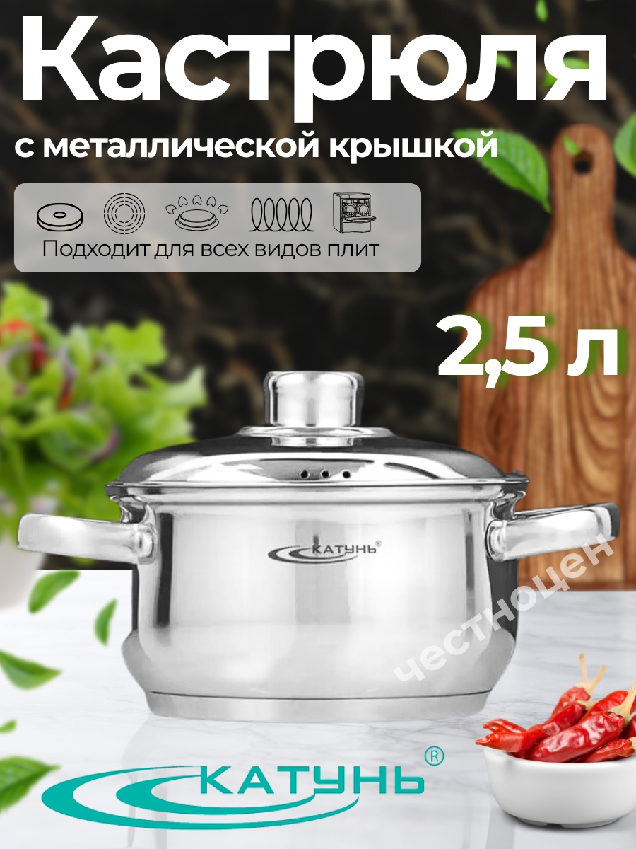 Кастрюля 2,5л Гретта КТ04-D-25м с метал. кр.