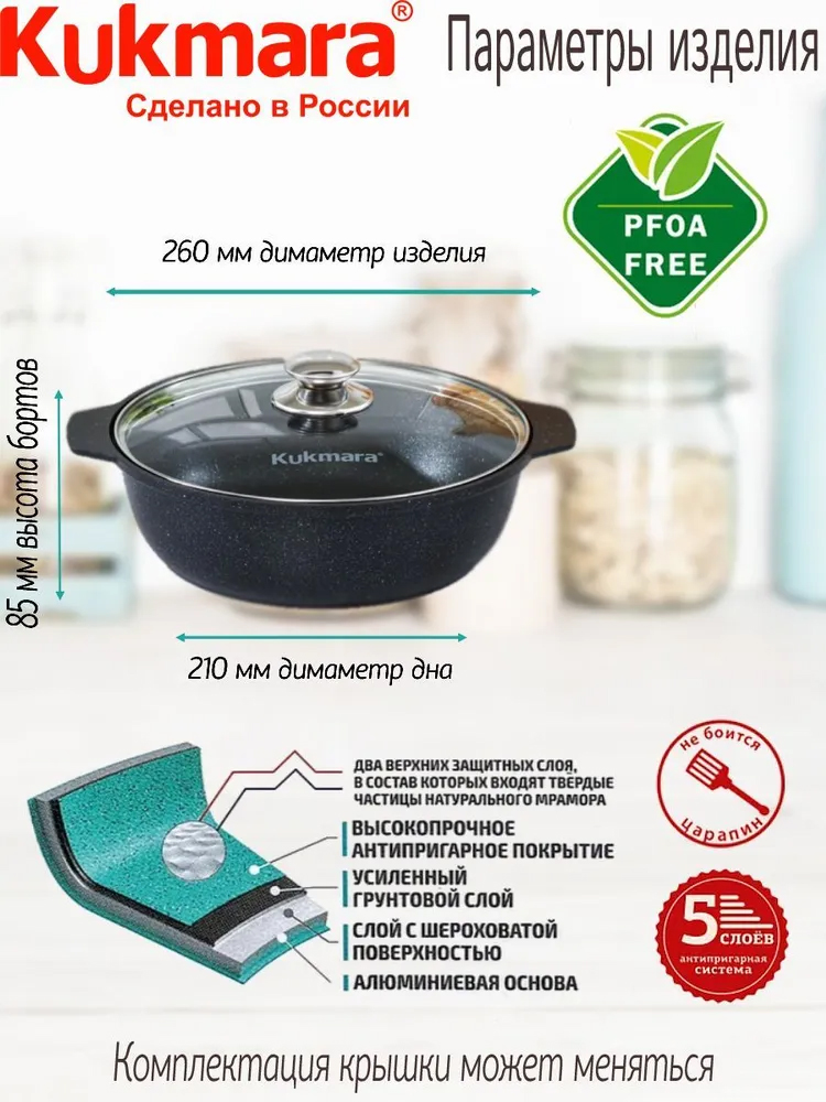 Внутреннее покрытие-Антипригарное мраморное покрытие нового поколения, усиленное сверхтвердыми частицами минералов