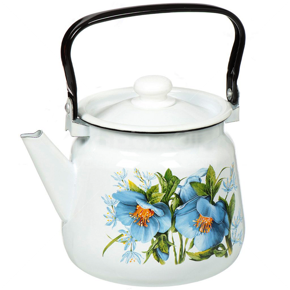 Чайник для плиты 3,5л эмаль С2716.3*96 сфер. декор Цветы синие, белый с кнопкой