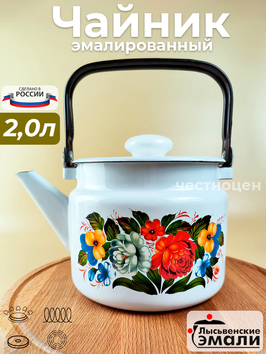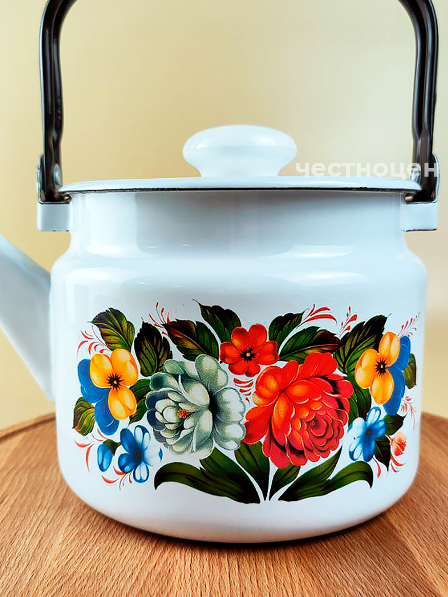 Эмалированный чайник — это прочная и экологически безопасная посуда, основой которой является высококачественная сталь. При правильном, бережном использовании он прослужит много лет. Усовершенствованное эмалевое покрытие, нанесенное в два слоя. Посуда легка в уходе, моется любыми моющими средствами. Можно использовать на всех видах плит: газовых, электрических, стеклокерамических, индукционных. Можно мыть в посудомоечной машине.Уход за эмалированной посудой. Эмалированная посуда легко очищается теплой водой с применением любых моющих средств. Также ее можно мыть в посудомоечной машине. Не рекомендуется чистить посуду металлическими щетками и мочалками, а также использовать абразивные чистящие средства крупной фракции. Посуду не следует подвергать температурным перепадам (не нагревать без содержимого, не замораживать продукты, содержащие воду). Не рекомендуется ставить на электрическую конфорку с диаметром меньше, чем дно посуды.