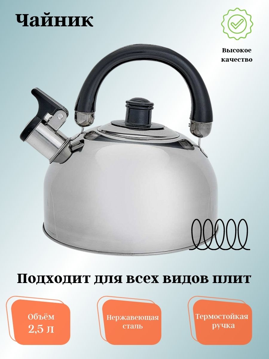 Чайник для плиты 2,5л из нержавеющая сталь ВЕ-0526