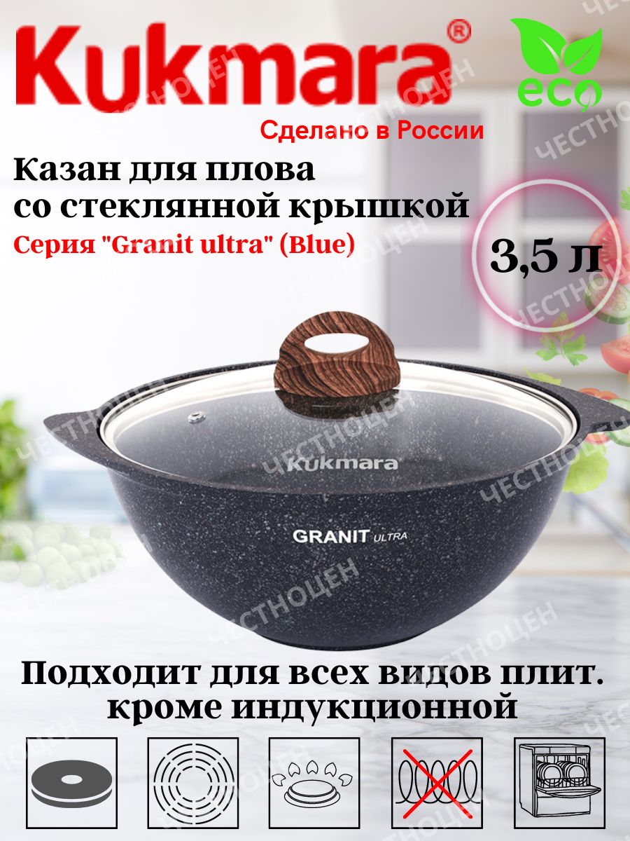 Казан для плова 3,5л со стекл крышкой, АП линия "Granit ultra" (original) кго37а