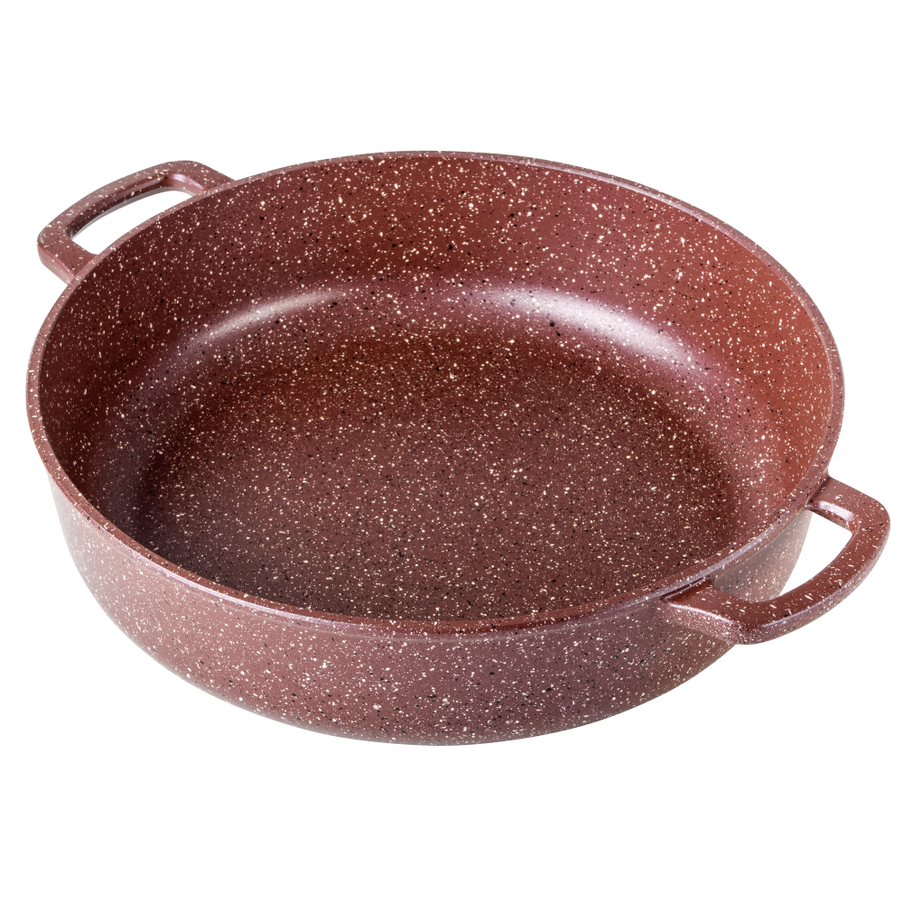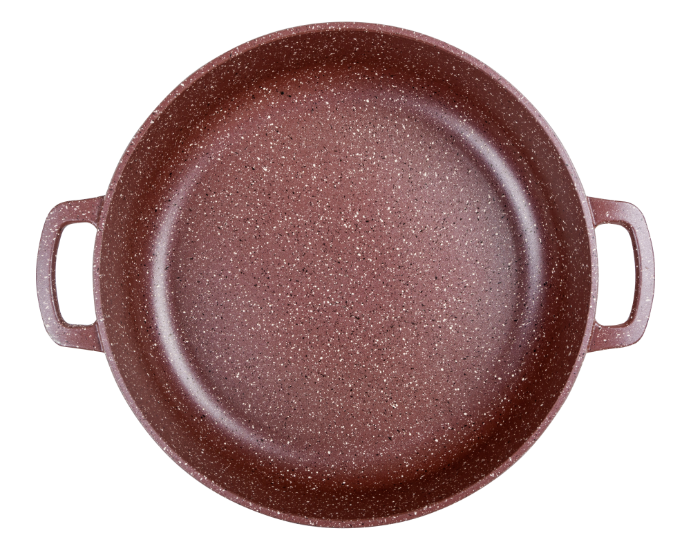 Также в ней можно приготовить плов рагу, жаркое или даже испечь пирог. «Шоколад». Коллекция посуды с улучшенным четырёхслойным антипригарным покрытием. Дополнительный слой с мраморным эффектом увеличивает износостойкость и создаёт оригинальный цветовой эффект мрамора шоколадного оттенка. Литой пищевой алюминий не имеет канцерогенных веществ и посторонних запахов.