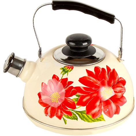 Чайник эмалированный со свистком. Внешнее трехслойное эмалевое покрытие не вступает во взаимодействие с пищевыми продуктами, защищает сталь от коррозии, придает посуде гладкую стекловидную поверхность и надежно защищает от кислот и щелочей. Подвижная ручка. Свисток съемный из нержавеющей стали. Крышка плотно прилегает к краю. Может быть использован на всех типах кухонных плит: электрических, газовых, керамических, индукционных. Подходит для мытья в посудомоечной машине.