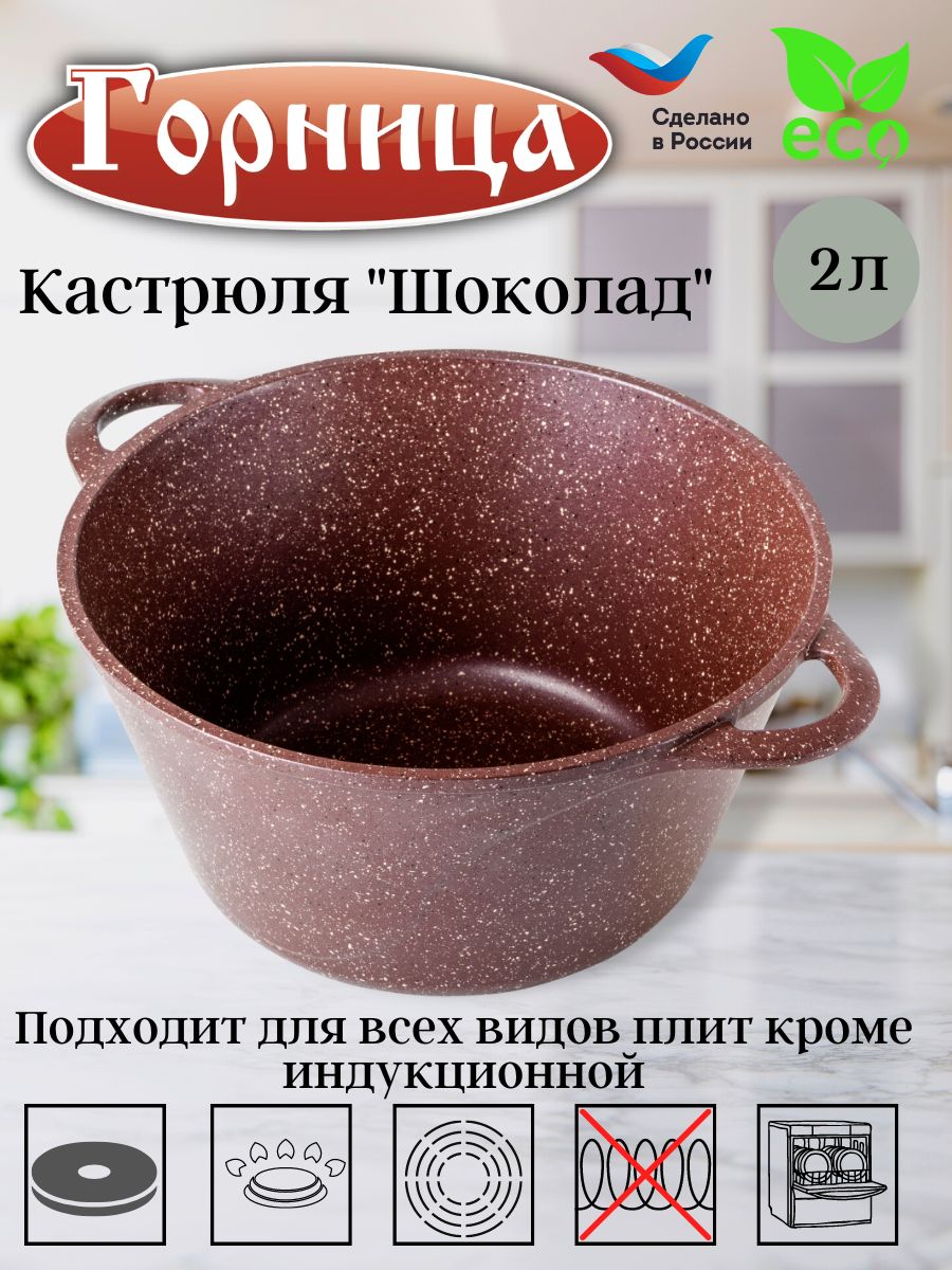 Литая алюминиевая кастрюля с антипригарным покрытием подходит для газовых, электрических и стеклокерамических плит. Кастрюли с цельнолитыми ручками можно использовать в духовом шкафу. «Шоколад». Коллекция посуды с улучшенным четырёхслойным антипригарным покрытием. Дополнительный слой с мраморным эффектом увеличивает износостойкость и создаёт оригинальный цветовой эффект мрамора шоколадного оттенка. Литой пищевой алюминий не имеет канцерогенных веществ и посторонних запахов. Толстые стенки и дно обеспечивают равномерное приготовление блюда. Посуда не деформируется при нагревании. Антипригарное покрытие на водной основе без вредных химических соединений: экологично и безопасно. Мелкие царапины не влияют на безопасность антипригарного покрытия. В кастрюле можно готовить без масла, ее легко мыть.
