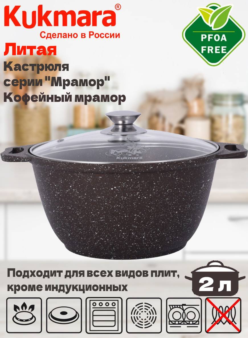 Кастрюля 2,0л со стекл. кр. АП (кофейный мрамор) кмк22а