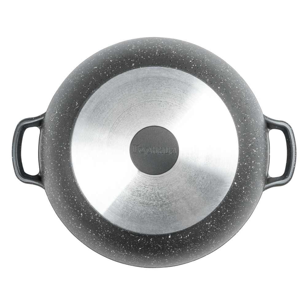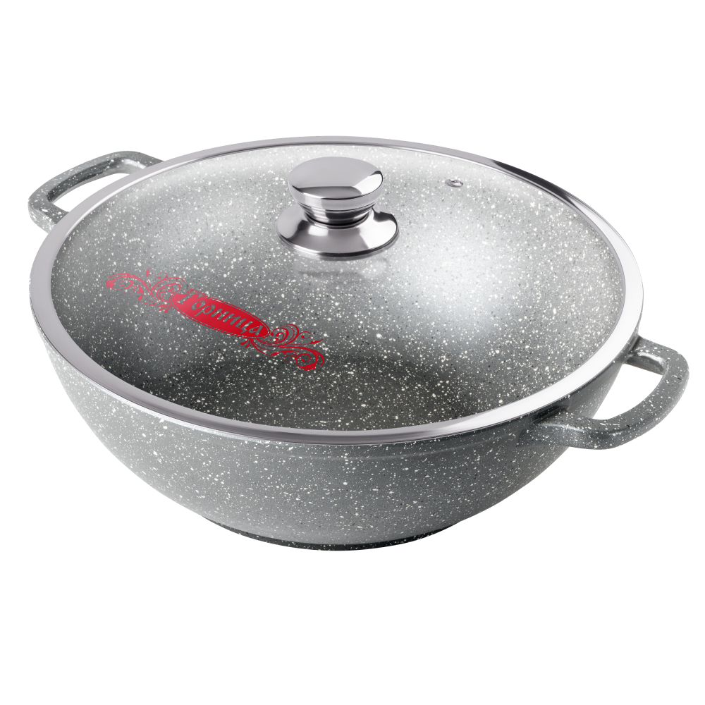 Казаны с цельнолитыми ручками можно использовать в духовом шкафу. «Графит». Коллекция посуды с улучшенным четырёхслойным антипригарным покрытием. Дополнительный слой с мраморным эффектом увеличивает износостойкость и создаёт оригинальный оттенок серого мрамора.