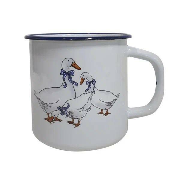 Кружка изготовлена из высококачественной стали с эмалированнаяованным покрытием. Она оснащена удобной ручкой. Такая кружка не требует особого ухода и ее легко мыть.