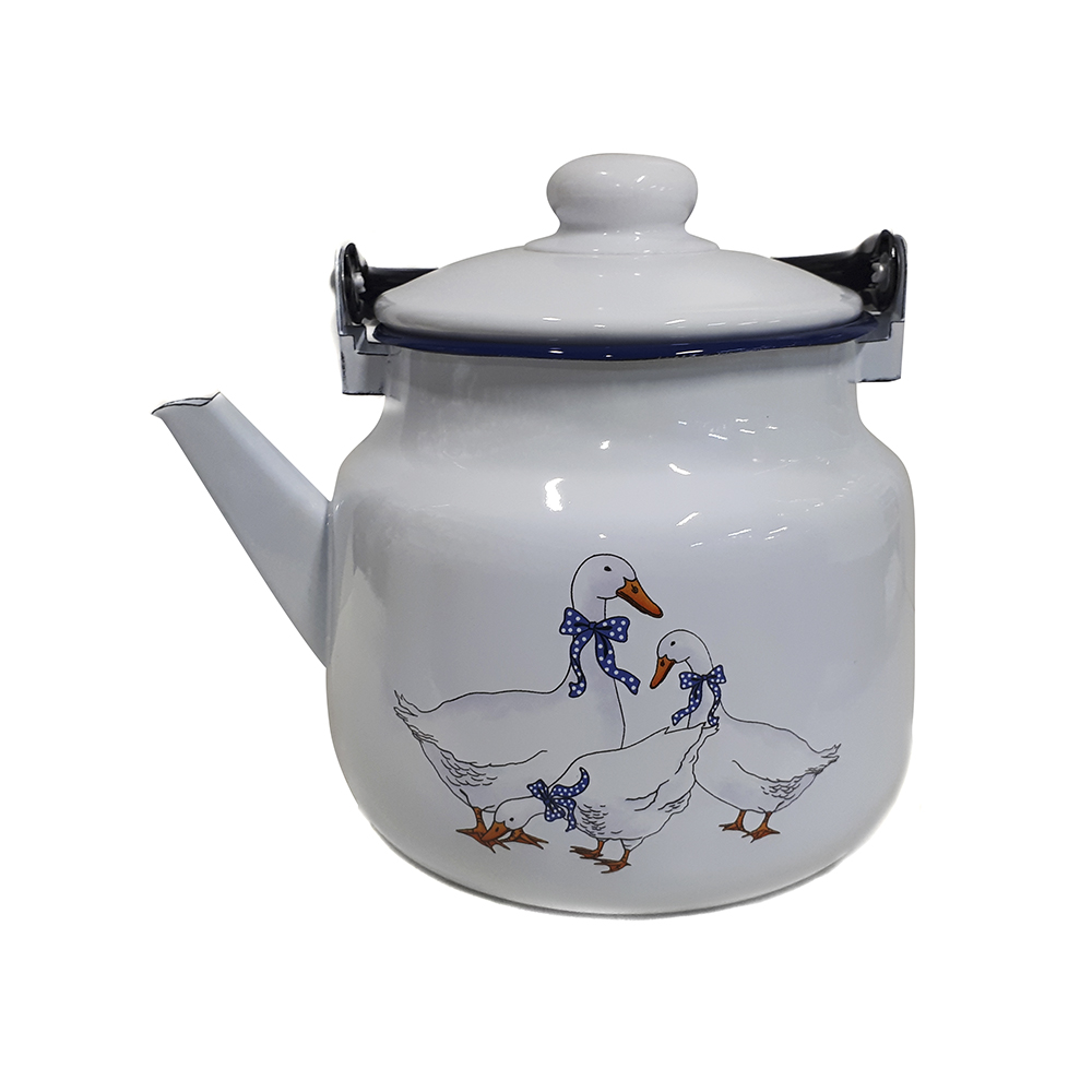 Чайник объёмом 3,5 литра выполнен из прочной и долговечной эмалированной стали. Он станет не только надёжным помощником на кухне, но и стильным дополнением к интерьеру благодаря оригинальному дизайну.