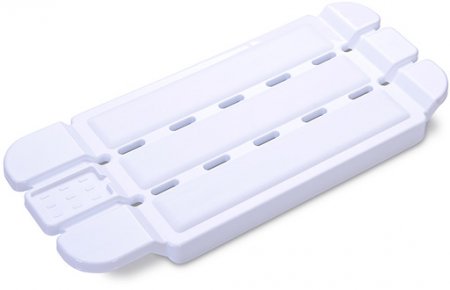 Полка надежно размещается на бортиках ванной, не скользит. Для повышения безопасности при использовании поверхность подставки ребристая с матовой не скользящей фактурой.