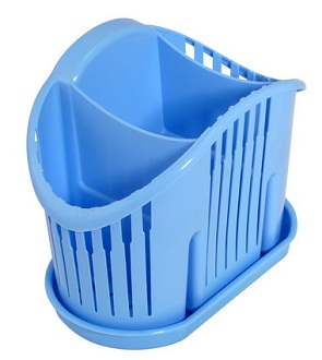 Сушилка для столовых приборов изготовлена из пластика и имеет три удобных отсека для раздельного хранения вилок, ложек и ножей. Съемный поддон для стекающей воды легко моется и сохраняет чистоту столешницы.