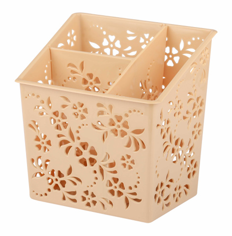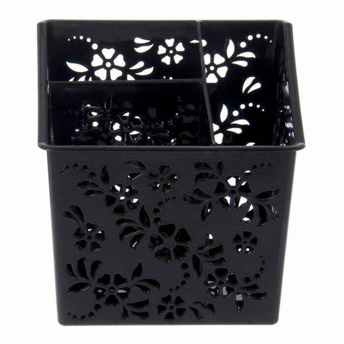 Подставка станет универсальным решением для хранения столовых приборов, расчесок, пультов, канцелярии и других мелочей. Подставка имеет внутреннюю вставку, которая разделяет ее на три части. Интересный дизайн впишется в любой интерьер