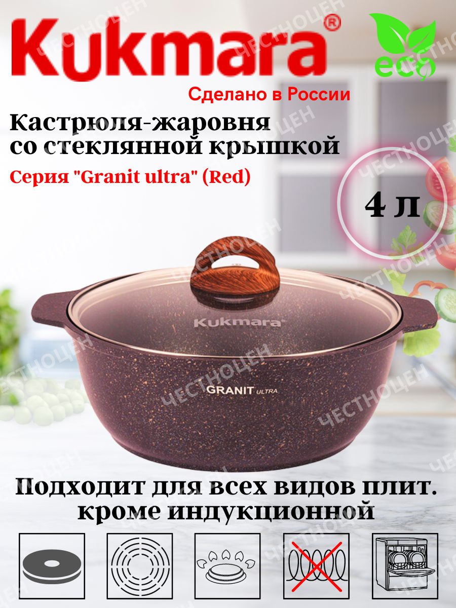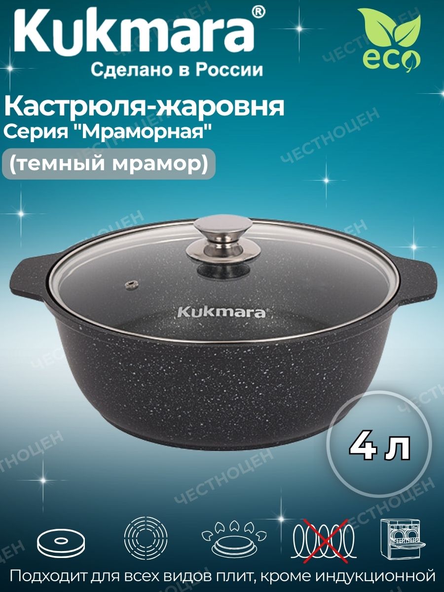 Кастрюля- жаровня 4,0л со стекл. крышкой АП (темный мрамор) жмт42а
