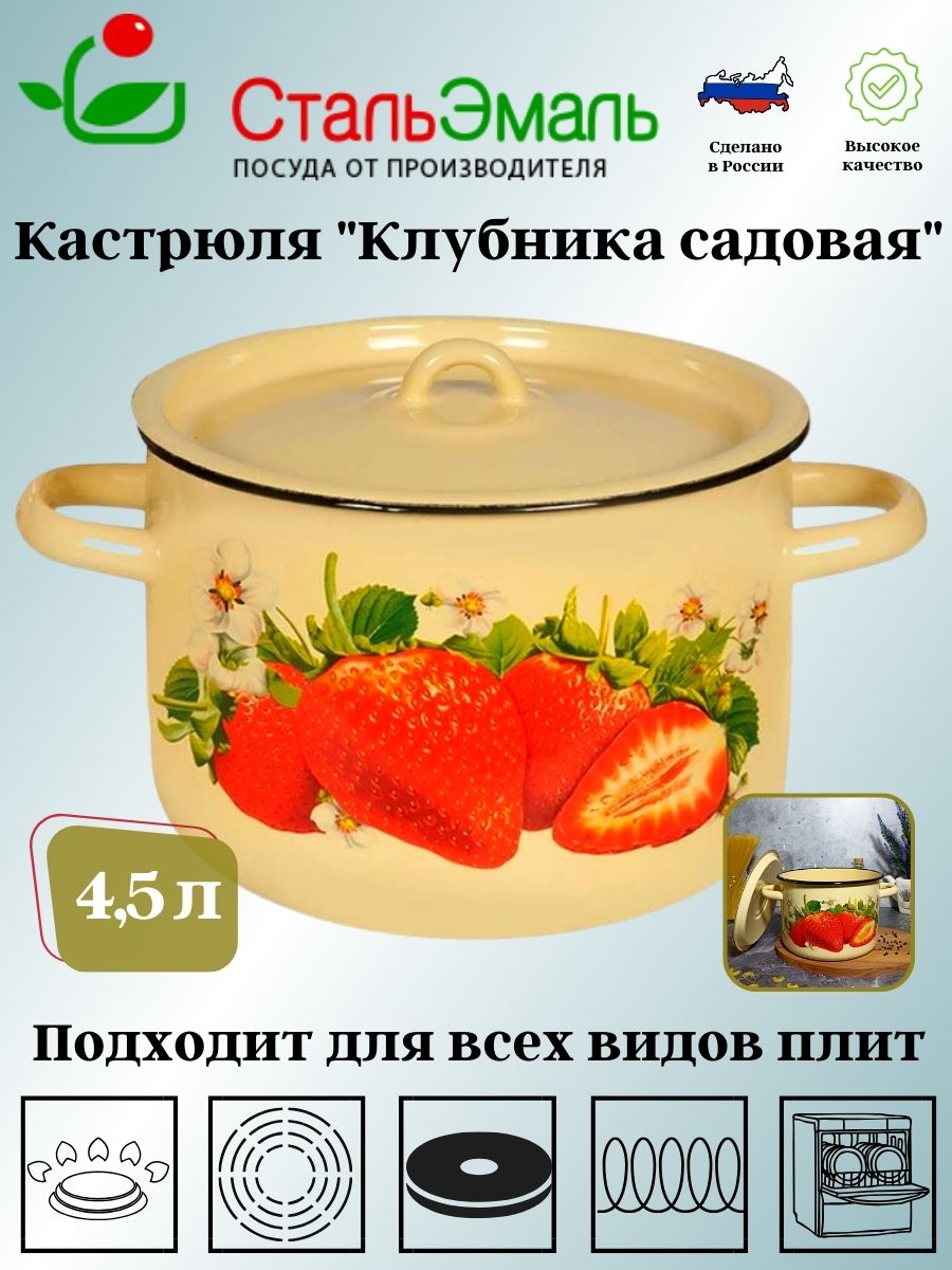Кастрюля эмалированная объемом 4,5 л с крышкой станет вашей постоянной помощницей на кухне. Средний объем позволяет готовить самые разнообразные блюда: супы для небольшой семьи, вторые блюда, холодцы, а также варенье. Эмалированная поверхность не впитывает запахи и не искажает вкус продуктов. Посуда характеризуется равномерным прогревом, легко моется и имеет приятный внешний вид.