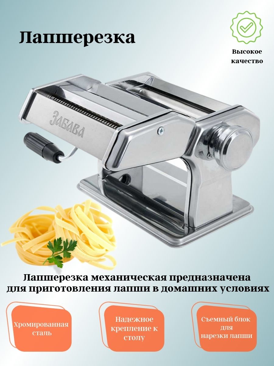 Ручная лапшерезка Забава РК-4000 отличается разборной конструкцией, благодаря которой она не займет много места при хранении. Также такое решение обеспечивает комфорт при очистке прибора от загрязнений. Предназначение устройства сложно переоценить, ведь с его помощью можно готовить лапшу в домашних условиях, отказавшись от аналогичных покупных мучных изделий. Нарезка лапши может производиться шириной 2 или 4 мм, при этом валик способен работать с листом теста шириной до 140 мм.