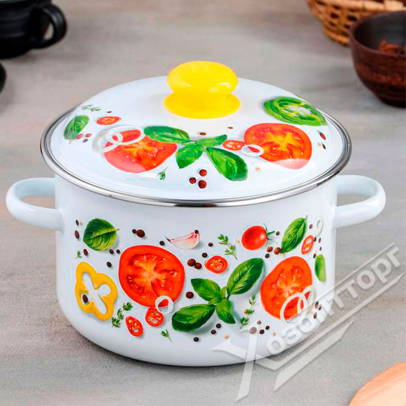 Кастрюля эмалированная с крышкой объемом 4 л, цвет белый
