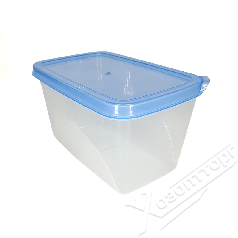Прямоугольный пластиковый контейнер с крышкой рассчитан на Хранение сыпучих продуктов, солений и других продуктов питания.