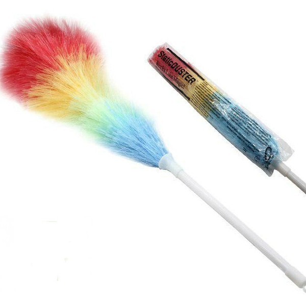 Данный пипидастр изготовлен из длинного и пушистого гипоаллергенного синтетического волокна, который создаёт статический разряд и притягивает к себе частички пыли. Особенность щётки для удаления пыли в том, что она не просто смахивает пыль, она ее притягивает и хорошо удерживает в волокнах. Разноцветная смётка не только избавит вас от пыли, но и одновременно поднимет настроение. Даже дети, приучаясь к уборке, могут использовать этот пипидастр.