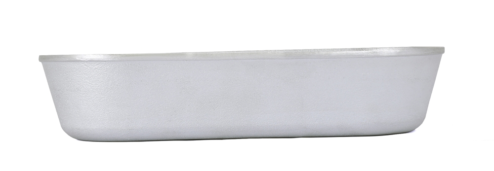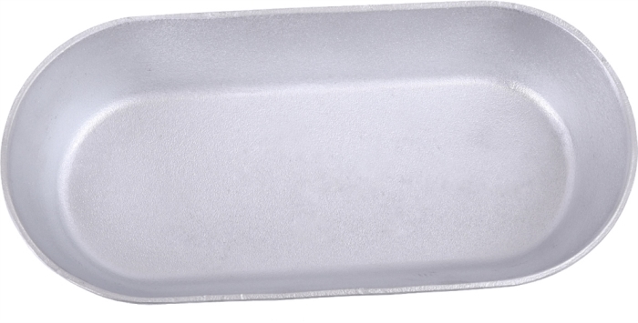 Литая алюминиевая посуда без покрытия всегда была, есть и будет на пике популярности. Тому есть несколько причин: широта ассортимента, доступность и легкость ухода и использования. Посуда из литого алюминия может прослужить долгие годы, сохраняя свои теплораспределительные и теплоаккумулирующие свойства.орпус овальной хлебной формы Kukmara с низкими бортами выполнен из литого алюминия, который обеспечивает быстрый нагрев и равномерное распределение тепла по всей поверхности. Благодаря этому корочка получается румяная, а мякиш воздушный, хорошо пропеченный. Лаконичная форма оснащена небольшими бортиками для более комфортного вынимания из духового шкафа.Овальная хлебная форма Kukmara подходит не только для домашнего использования, но и для автоматизированных комплексов. Хлебная форма удобна, легко очищается, с ней приятно работать.