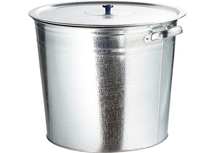 Бак для белья оцинкованный вместимостью 52 литра. Для удобства бак снабжен двумя ручками и крышкой.