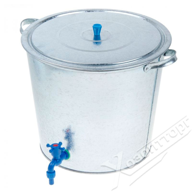 Объем бака позволяет за один раз переносить до 32 л воды, а так же хранить воду для любых целей. Бак изготовлен из оцинкованной стали, поэтому отличается прочностью и не подвержен образованию коррозии. Вместе с баком поставляется крышка, которая не допускает попадания мусора в жидкость, и кран, позволяющий наливать воду из бака без использования дополнительных емкостей, а так же установить его в качестве умывальника или варианта дачного душа. Две ручки облегчают транспортировку даже наполненного бака.