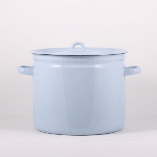 Изготовлена из стального проката, кастрюля покрыта двумя слоями жаропрочной эмали. Это обеспечивает прочность и долговечность изделия, а также устойчивость к появлению царапин и сколов.