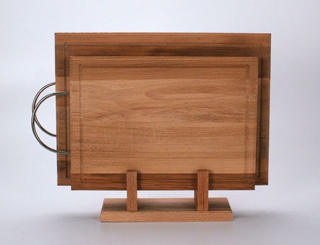 Канавка на досках позволяет удобно нарезать продукты, сохраняя их форму и структуру. Металлическая ручка обеспечивает надежный хват и удобство при использовании.