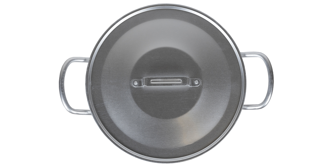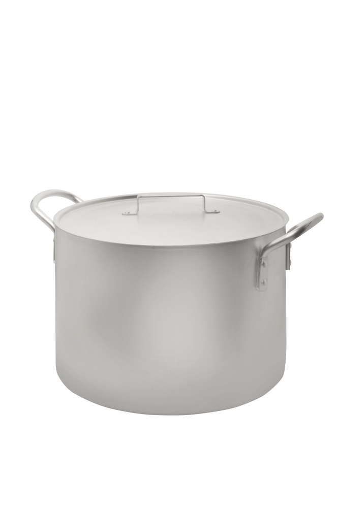 Изготовлен из прочного штампованного алюминия, устойчивого к температурному воздействию. Изделие оснащено металлическими ручками и идет в комплекте с металлической крышкой. Соответствует ГОСТ и отвечает всем санитарно-гигиеническим требованиям.