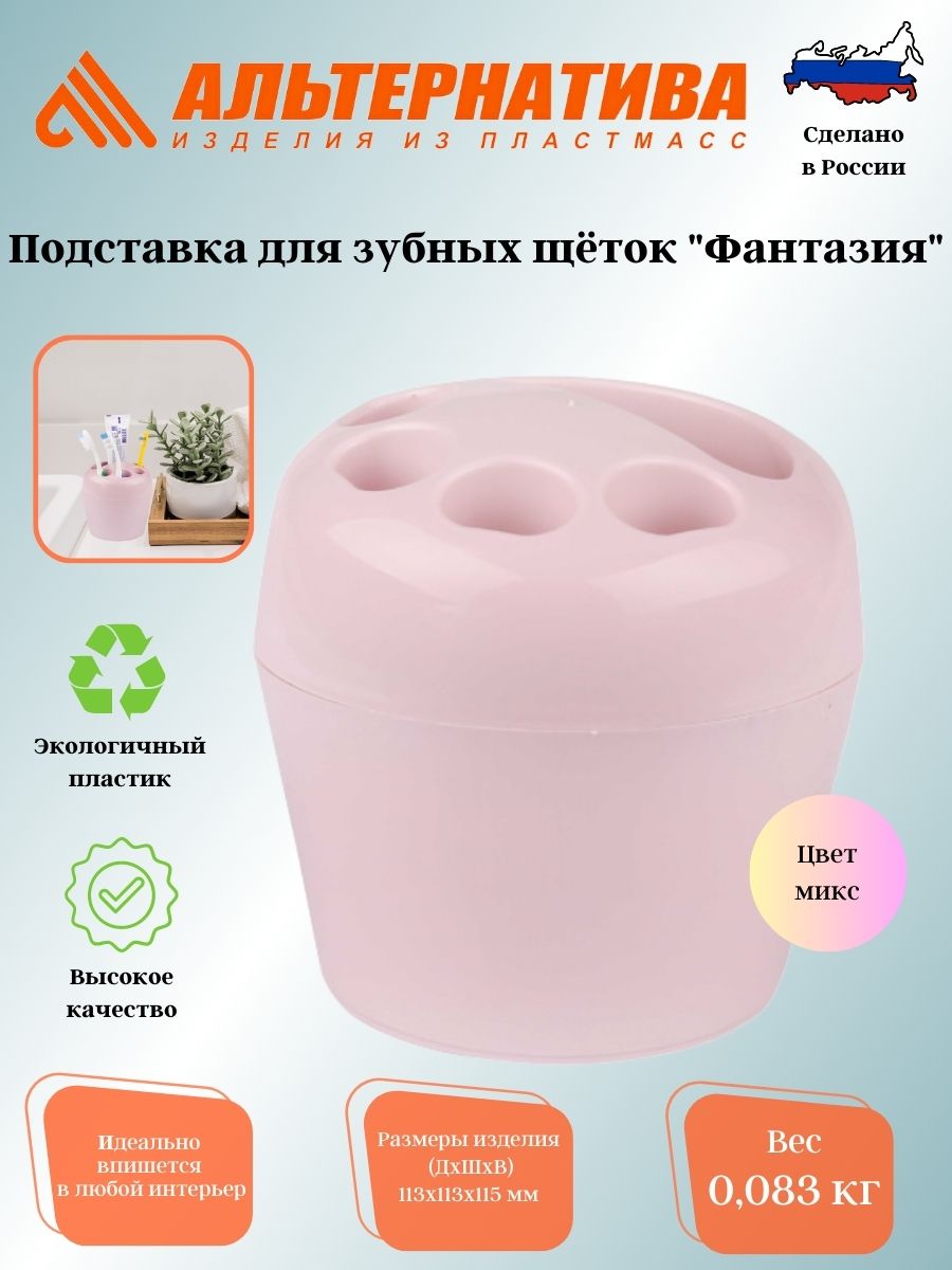 Подставка для зубных щеток «Фантазия» произведена из высококачественного полипропилена. Подставка идеально подойдет для хранения как для зубных щеток, так и для зубной пасты. Изделие имеет разборную конструкцию, что позволит её легко содержать в чистоте. Такая подставка идеально впишется в любой интерьер ванной комнаты.