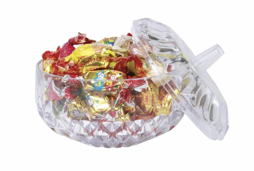 Сахарница «Богема» выполнена из высококачественного пластика, имитирующего стекло. Сахарница декорирована интересными узорами и сочетает в себе изысканный дизайн с максимальной функциональностью. Оригинальный дизайн и качество исполнения сделают такую сахарницу настоящим украшением стола к чаепитию. Она удобна в использовании и понравится каждому. Благодаря крышке сахар не намокает и не впитывает посторонние запахи. Изделие рекомендуется мыть тёплой водой с применением нейтральных моющих средств.