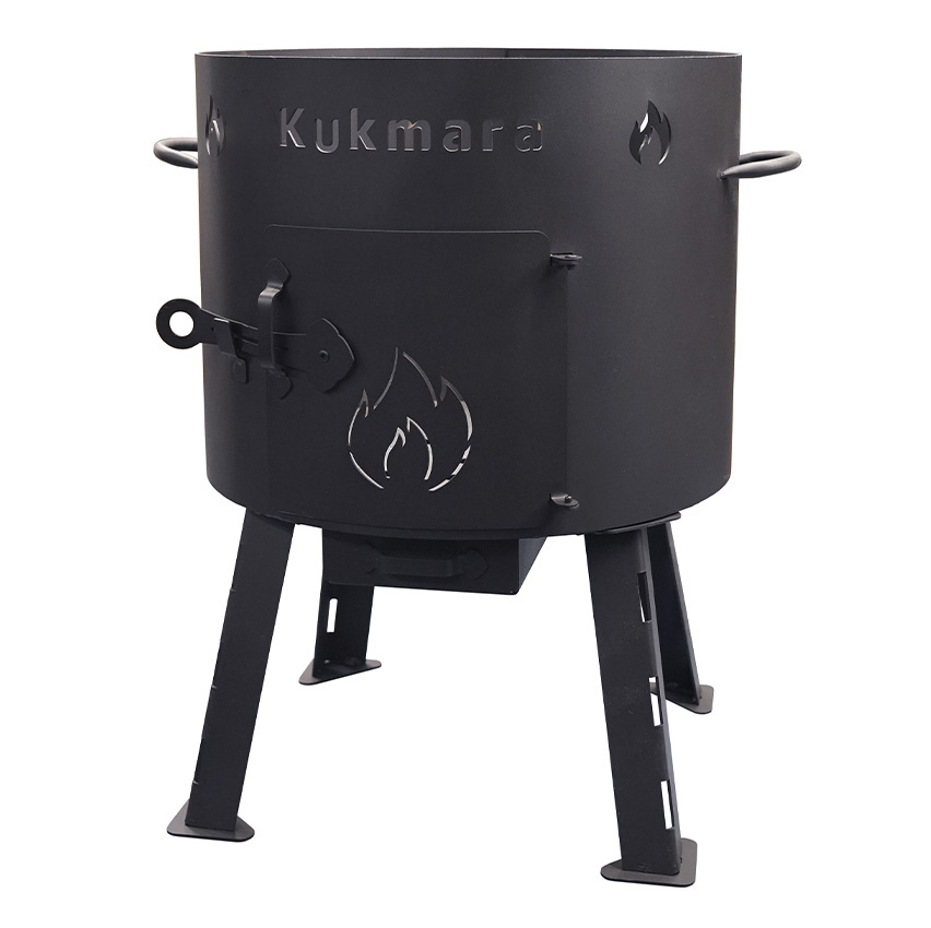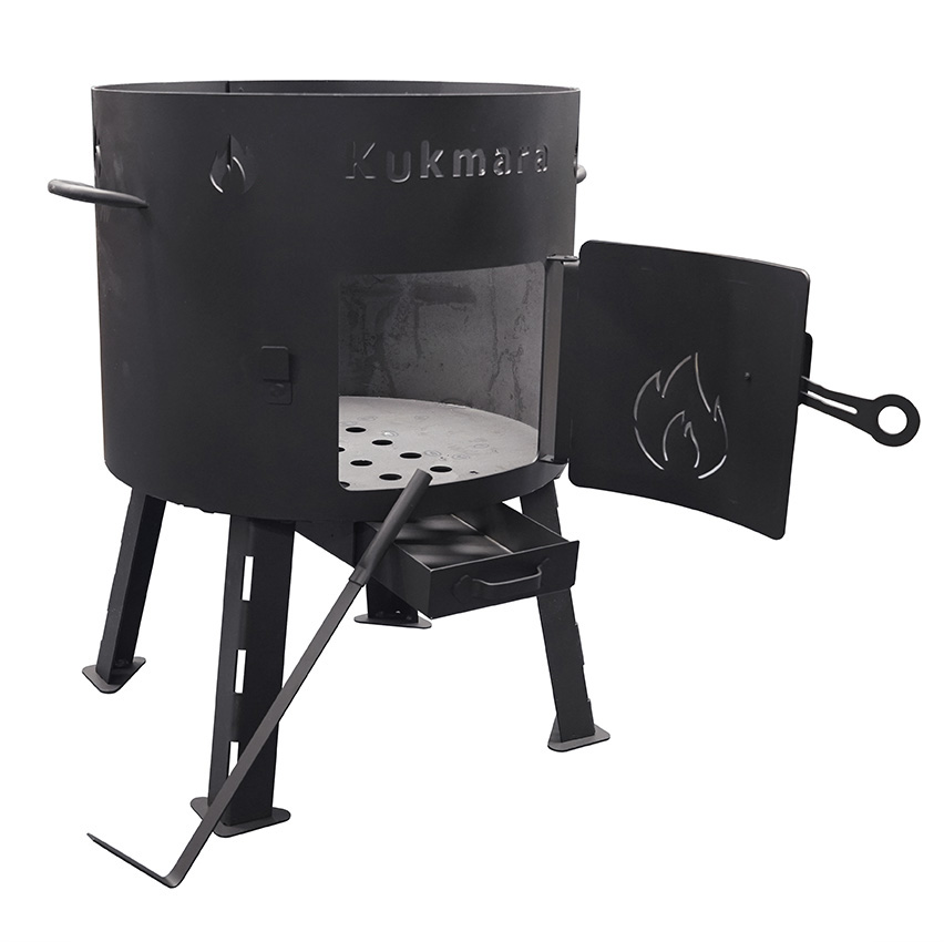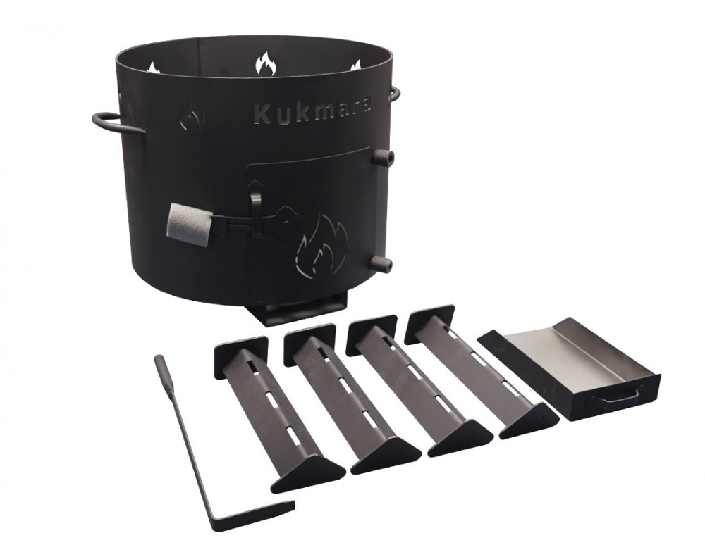 Учаг предназначен для безопасного и быстрого приготовления пищи в казане, походном котле на природе, так как разжигание огня происходит внутри учага, а жар от огня и углей в большей степени окутывает весь казан или котел. Изделие представляет собой металлический цилиндр-корпус, в комплект которого входят съёмные ножки, дверце, кочерга и колосник. За счёт оптимальной толщины стенок (2 мм) исключена возможность деформации стенок изделия.